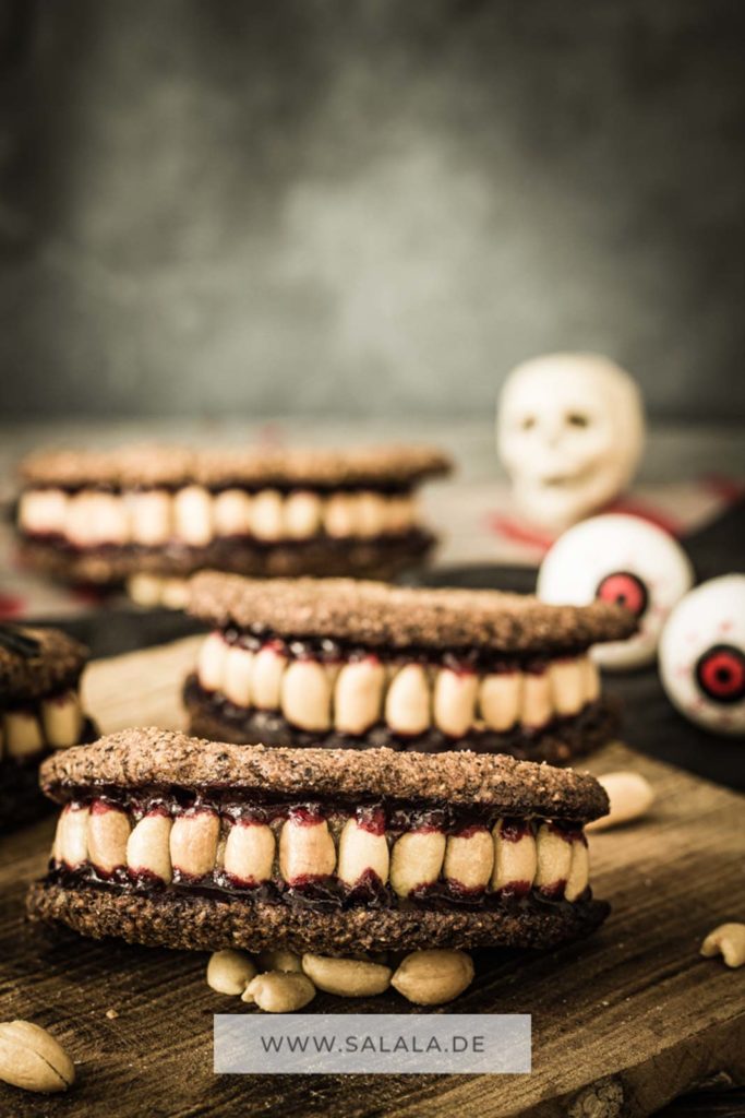 Zombiegebiss – Gefüllte Halloween Kekse mit Erdnusscreme