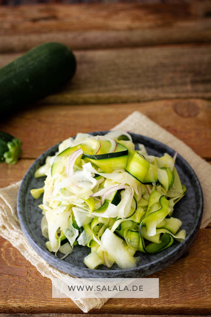 Bissiger Zucchini-Radi-Salat mit Essig-Öl-Dressing
