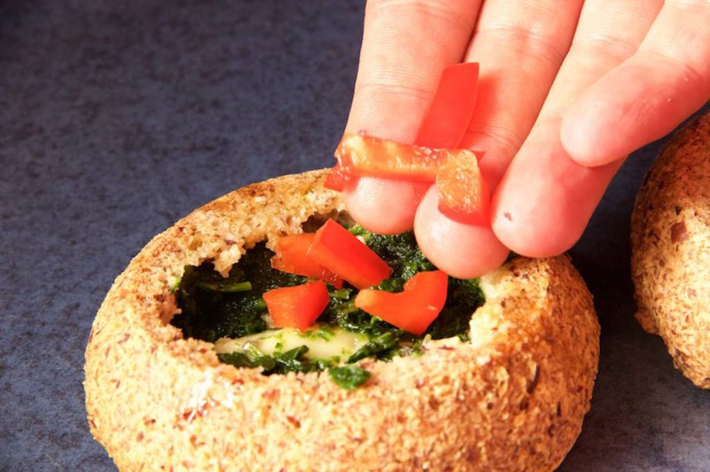 Etwas Spinat da drauf und leicht festdrücken.